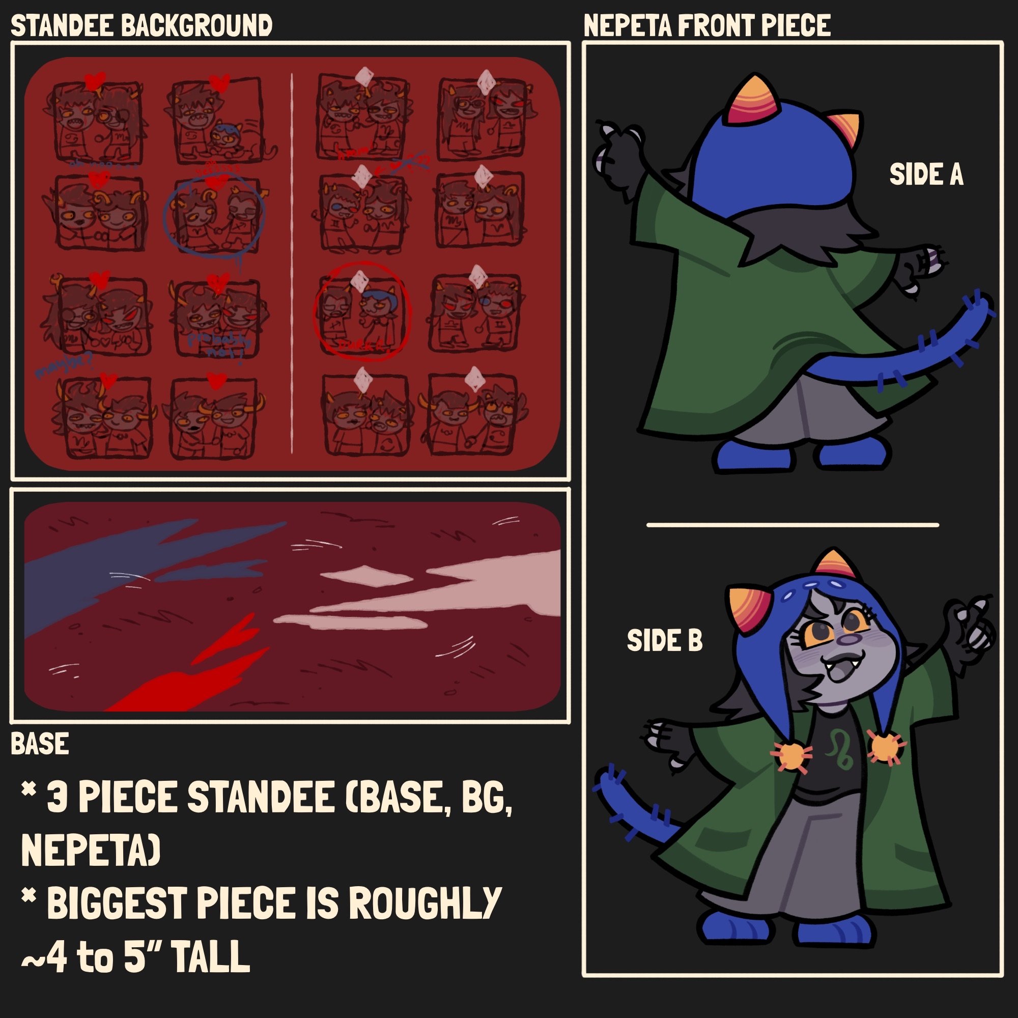 Small piece standee featuring Nepeta and her shipping wall. Have a tiny Nepeta in your home!